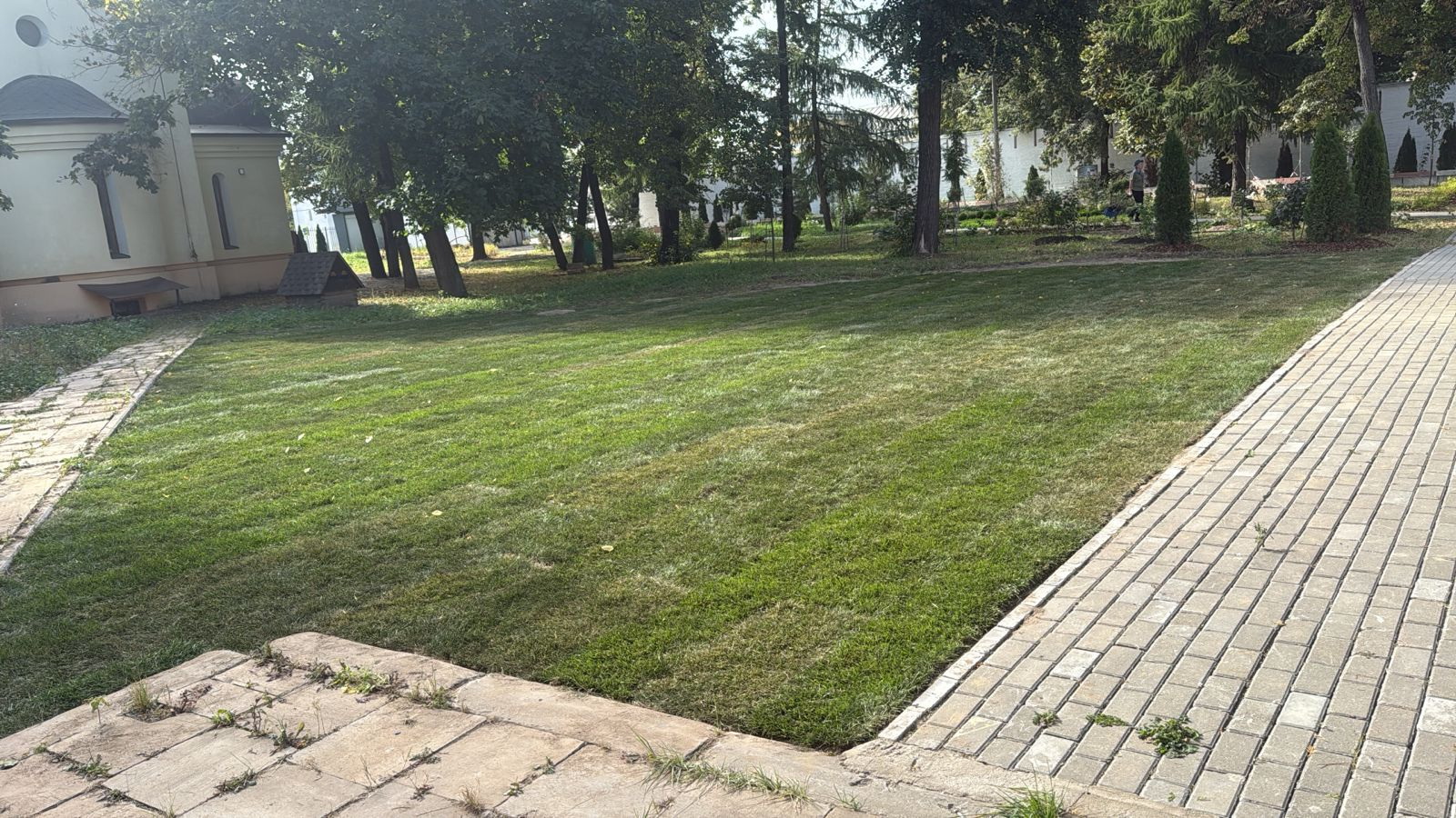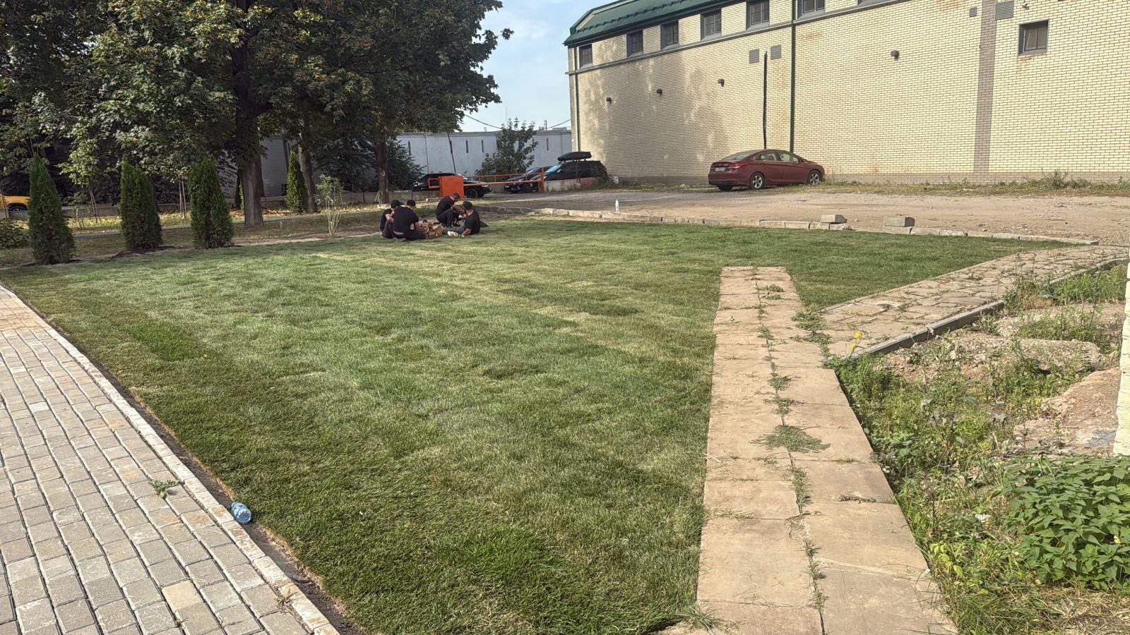 Попечением наших благодетелей, прихожан и сотрудников продолжается благоустройство территории храма Димитрия Донского. Была продлена входная дорожка до нашего хоз. корпуса, освобождена от бетонного основания прилегающая территория, вывезен мусор, подготовлено основание для посадок и высажен рулонный газон.